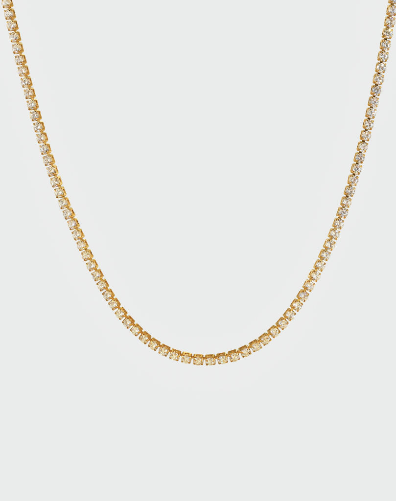 This tennis necklace can be worn as a choker at 14'' and looks great layered with other necklaces.