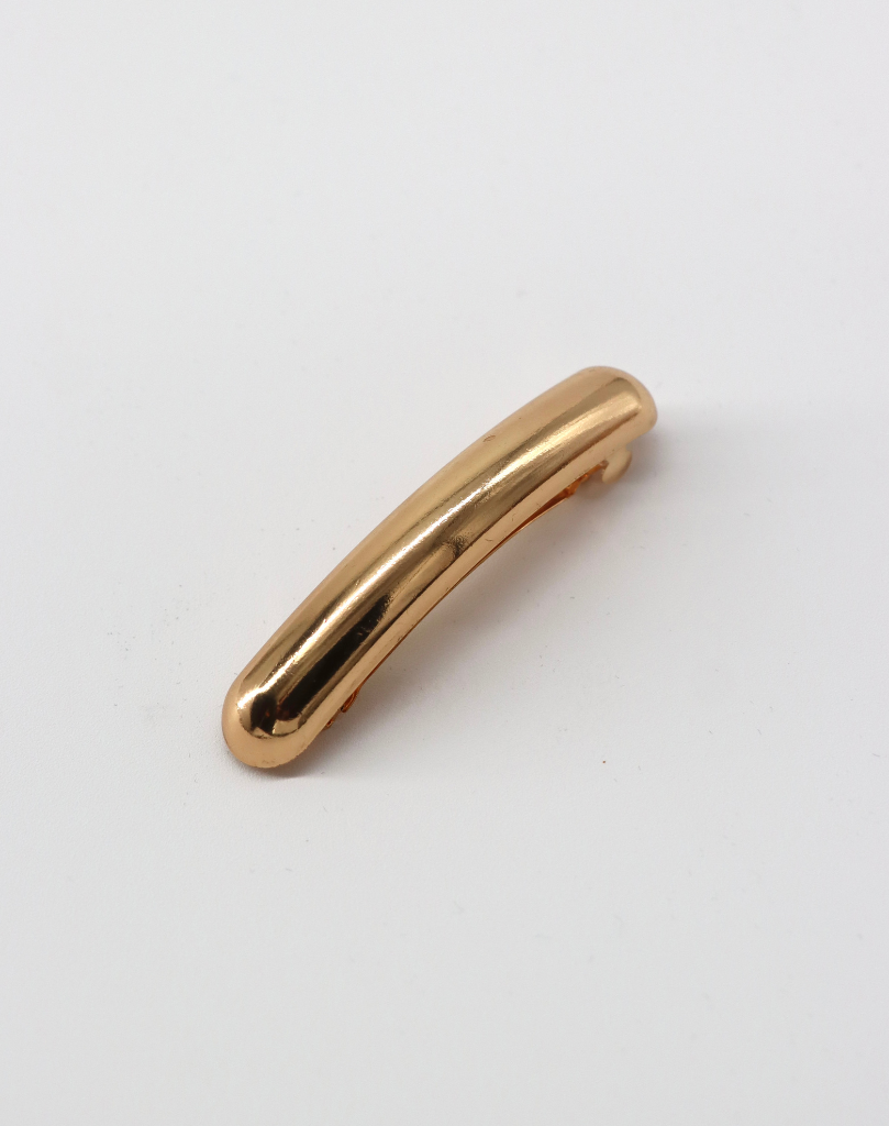 This gold toned bar, complete with a metallic finish, features a curved design making it a stylish addition to any hairstyle.