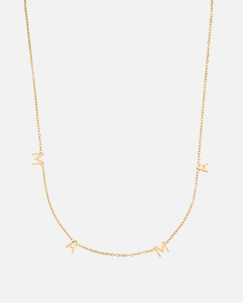 A delicate gold-plated chain adorned with spaced letter charms, creating a meaningful piece designed for everyday sentiment and effortless style.
